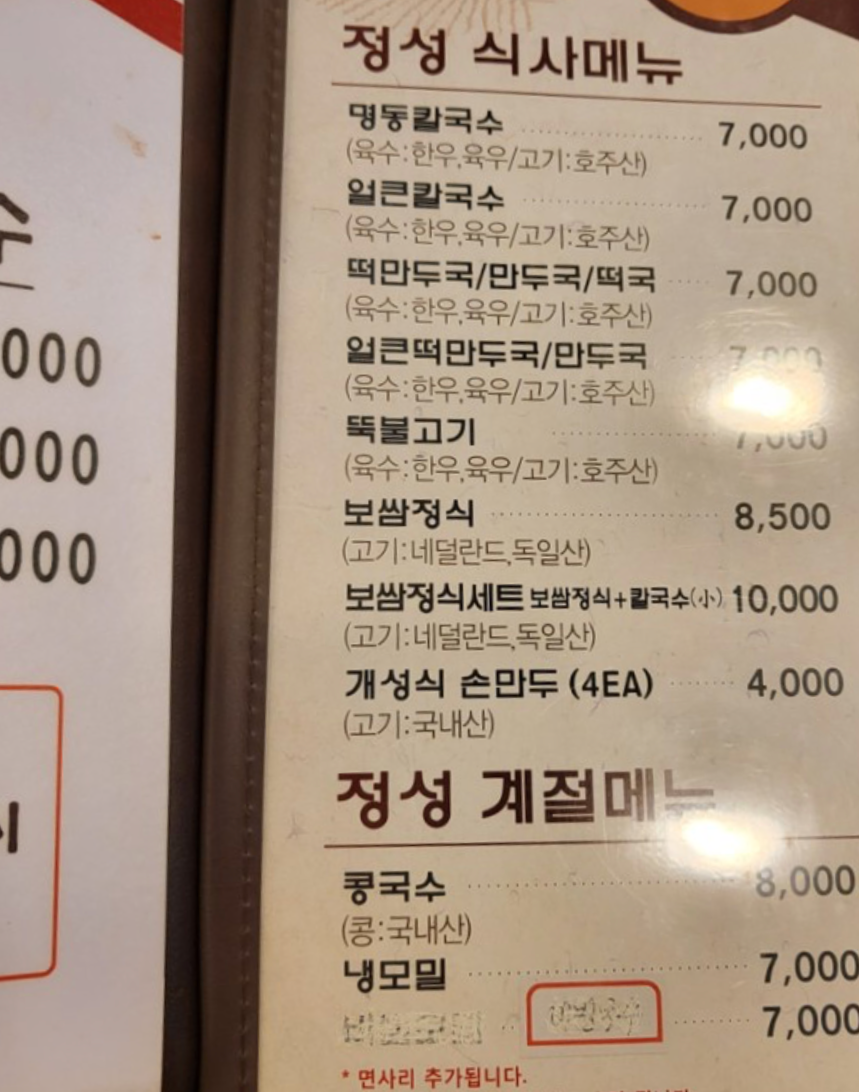 명동칼국수와 만두를 주문했어요~