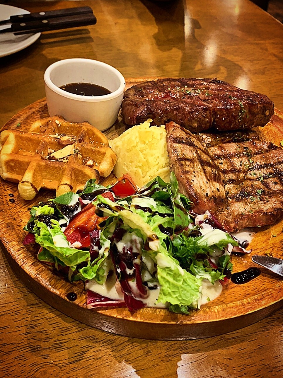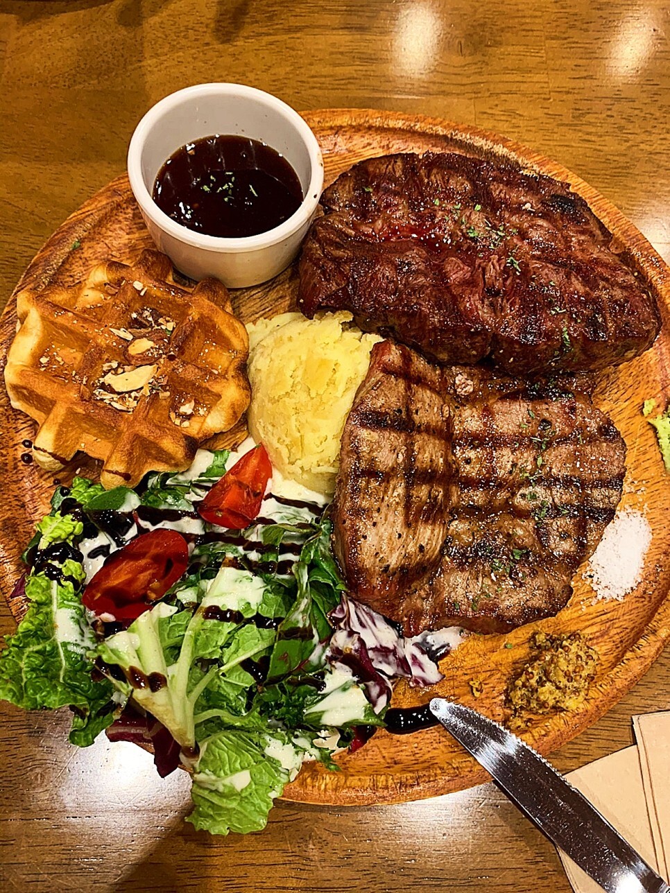 감자샐러드랑 와플까지 같이 나왔어요!