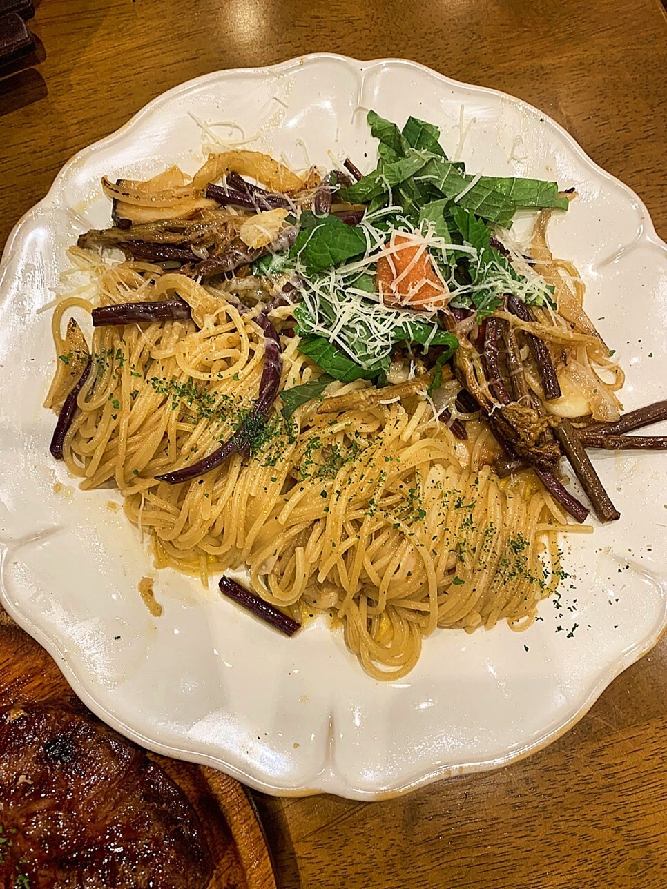 파스타와 스테이끼를 나눠먹기로 했어요 ㅎㅎ