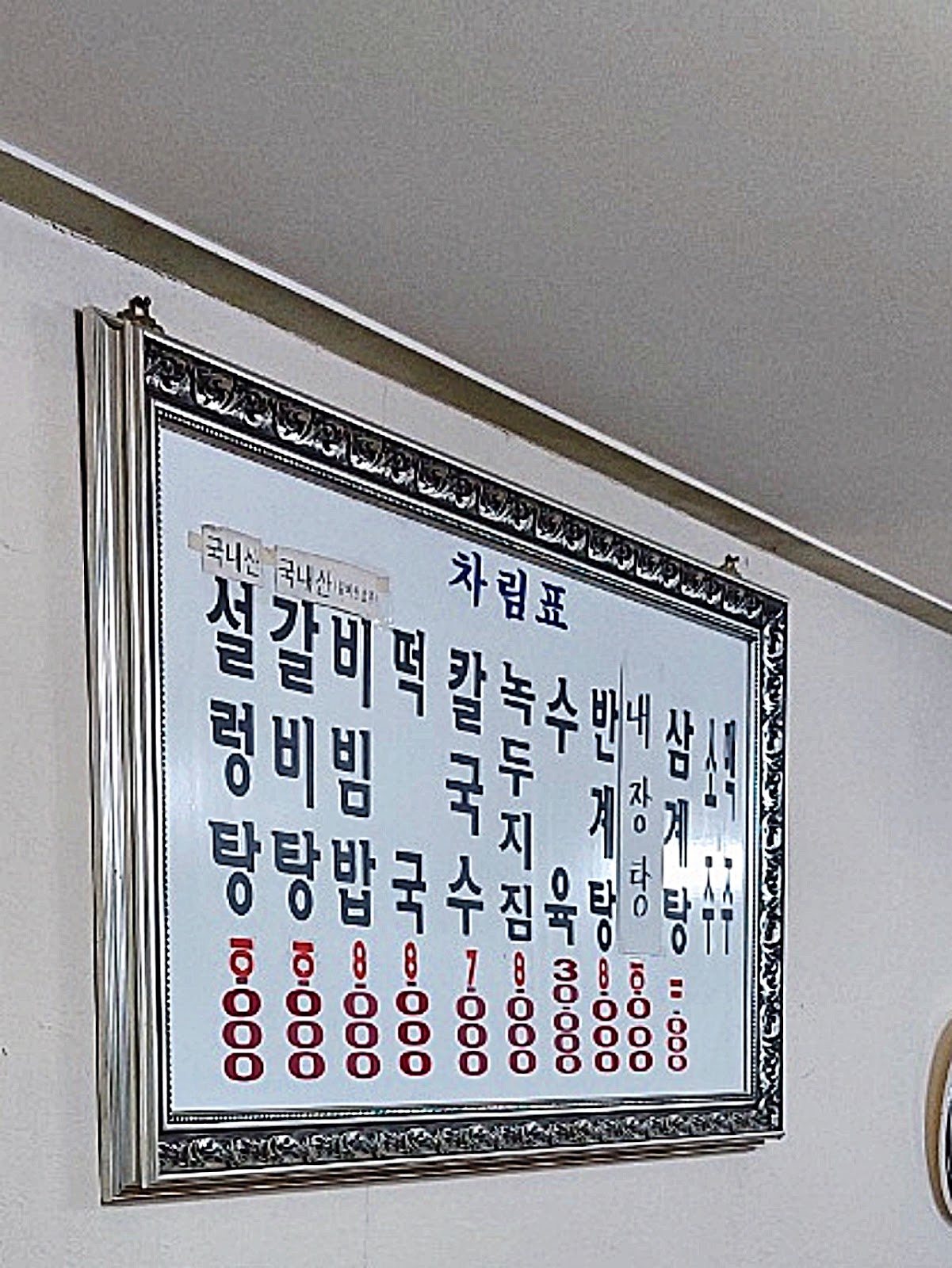 메뉴는 이렇게 다양한 한식메뉴가 있는데